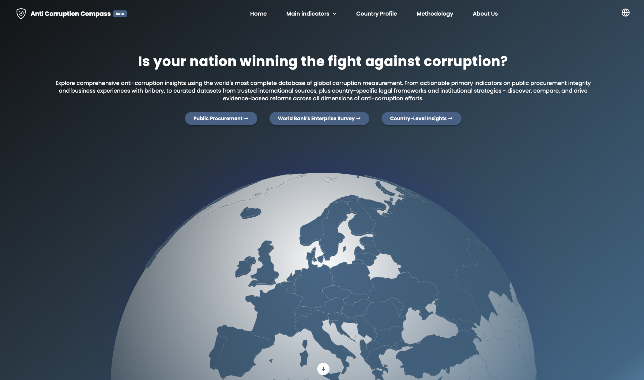 The Global Corruption Measurement Data Dashboard is a central repository that brings together anti-corruption indicators and methodologies to provide reliable data to inform dialogue, support collaboration, and guide evidence-based policymaking.